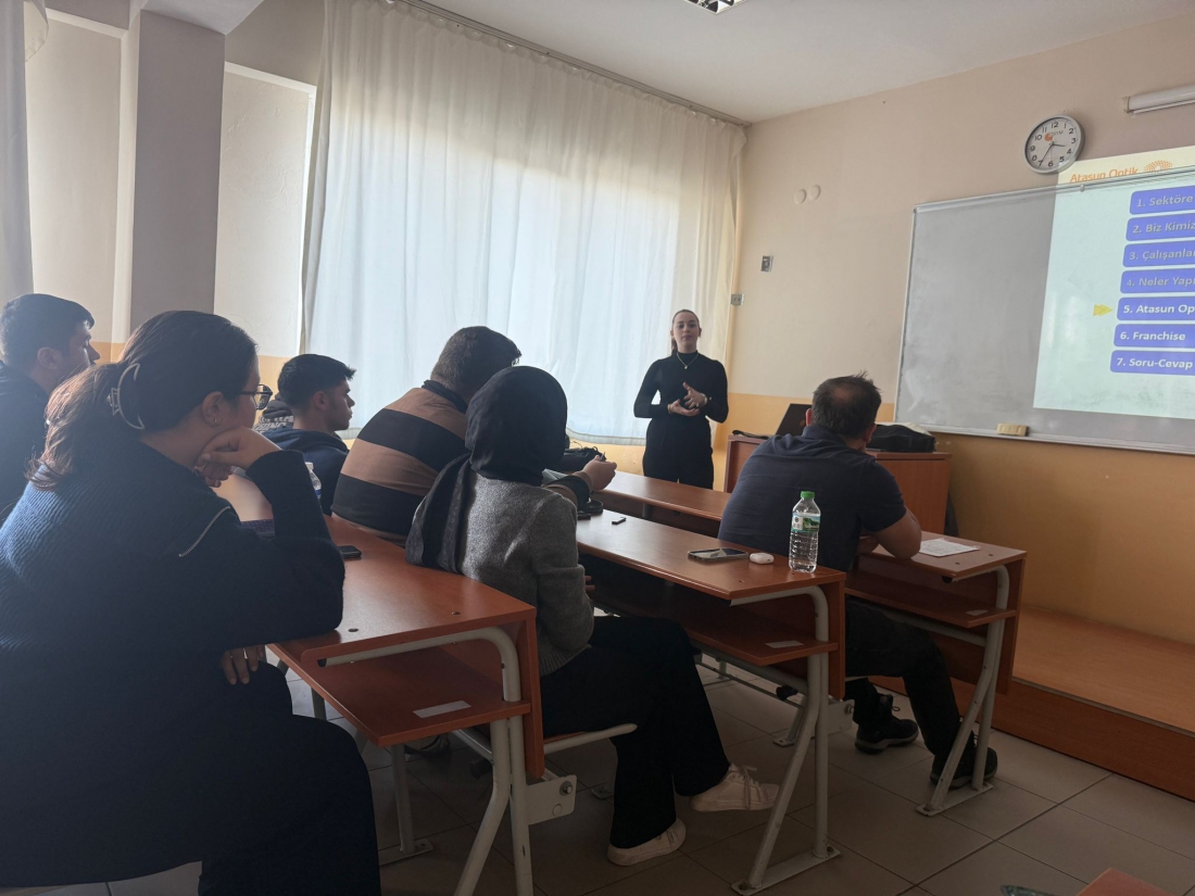 Atasun Optik Batı Marmara Bölge Müdürlüğünden Semih ERDİNÇ (Bölge Müdürü) Dilan YILDIZ (İnsan Kaynakları İş Ortağı) İrem ANAÇ (Optisyen-Kırklareli Üniversitesi Sağlık Hizmetleri Meslek Yüksek Okulu Optisyenlik Programı Mezunu) Atasun optik kariyer fırsatları, staj imkanları ve Atasun Optikte optisyenlik mesleği ile ilgili 25 Kasım 2025 saat 15:00'te Sağlık Hizmetlei Meslek Yüksek Okulu ana binası 302 Nolu salonda bilgilendirme semineri yapmıştır.
