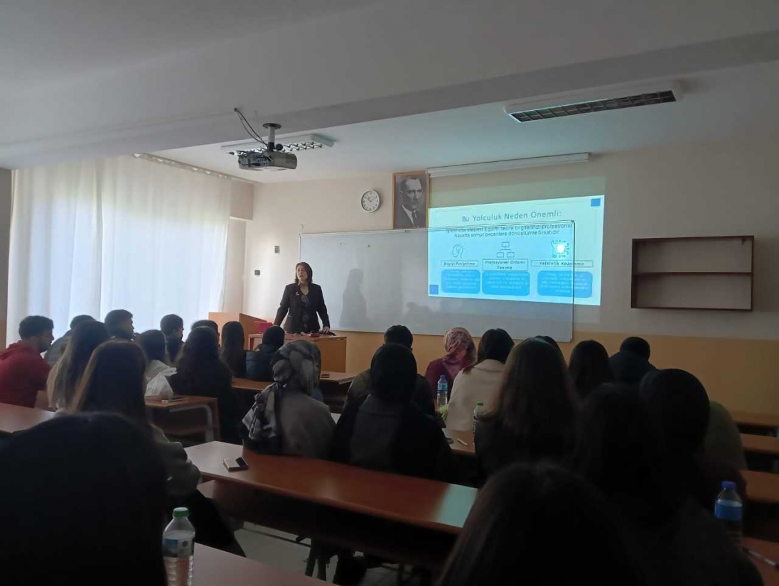 Program danışmanları Dr. Öğr. Üyesi Pınar ÖZDEMİR KARACA, Öğr. Gör. Bahar SEREZ ARSLAN ve Öğr. Gör. Berrak DENİZ DEĞER koordinatörlüğünde 8 Aralık 2025 tarihinde gerçekleştirilen bilgilendirme toplantısında, öğrencilerimizin işletmelerde karşılaşabilecekleri durumlar hakkında farkındalık kazanmaları hedeflenmiştir. Bu kapsamda, işletmede çalışma düzeni, mesleki disiplin, günlük-haftalık takip formlarının doldurulması, devam-devamsızlık esasları, iş sağlığı ve güvenliği kuralları, sigorta işlemleri, kurum-öğrenci-işletme arasındaki iletişim kanalları gibi konularda detaylı bilgi sunulmuştur.
