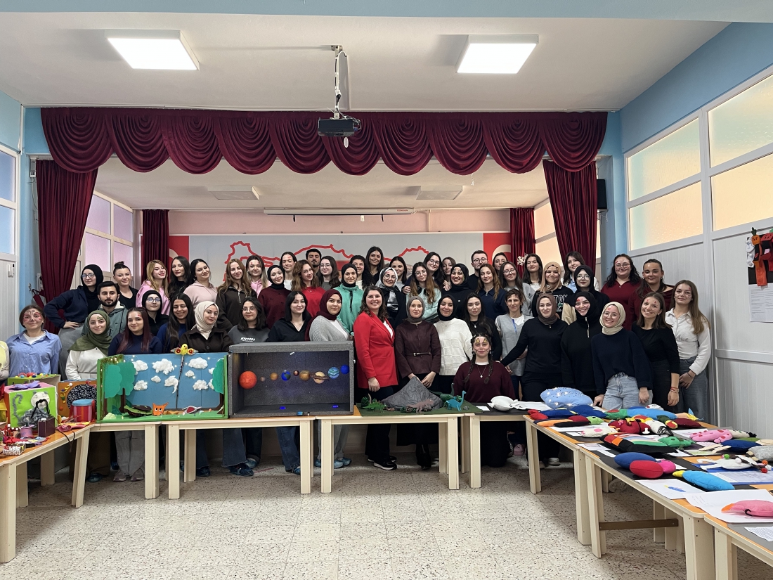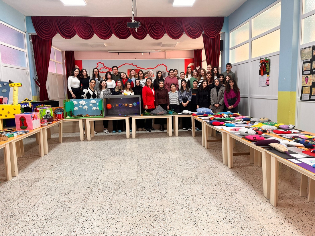 Sergi kapsamında öğrenciler tarafından hazırlanan özgün ve yaratıcı materyaller ziyaretçilerin beğenisine sunulurken, okul öncesi çocuklarla birlikte yüz boyama ve çim adam atölyeleri düzenlendi. Çocukların yaratıcılıklarını destekleyen ve eğlenerek öğrenmelerine olanak sağlayan bu atölye çalışmaları, etkinliğe renk kattı. Sergi ve atölyeler, öğrencilerimiz için önemli bir uygulama deneyimi sunarken çocuklar için de keyifli ve öğretici bir gün olmasını sağladı.