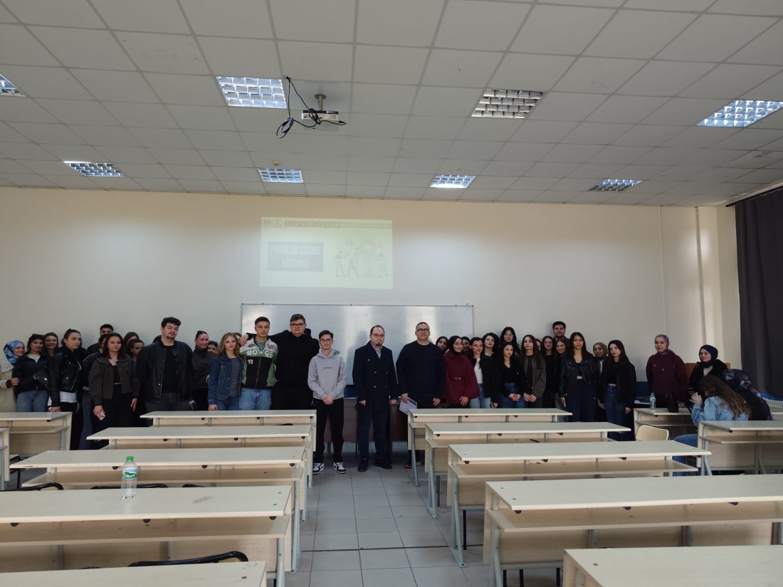 Eğitim kapsamında öğrencilerin akademik ve mesleki yaşamlarında önemli bir yere sahip olan zaman yönetimi ve problem çözme becerileri ele alındı. Programın ilk bölümünde zamanın etkin kullanımı, önceliklendirme teknikleri ve planlama süreçleri hakkında kapsamlı bilgiler paylaşılırken; ikinci bölümde ise karşılaşılan problemlere analitik ve çözüm odaklı yaklaşım yöntemleri üzerinde duruldu.