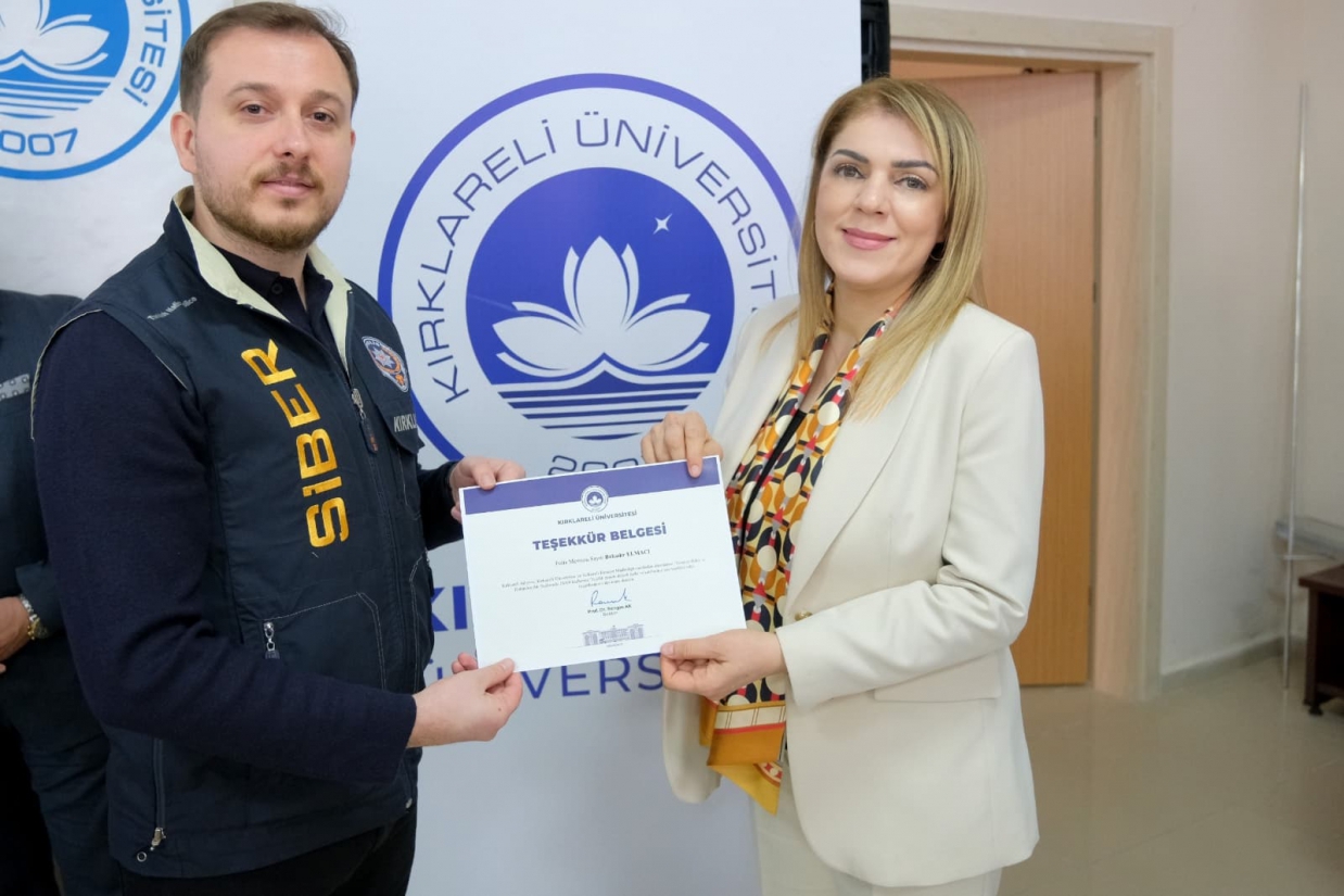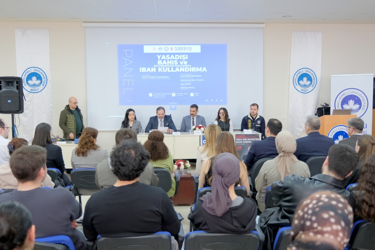 Üniversitemiz, Kırklareli Cumhuriyet Başsavcılığı ve Siber Suçlarla Mücadele Daire Başkanlığı (SİBERAY) iş birliğinde “Yasadışı Bahis ve Dolandırıcılık Suçlarında IBAN Kullandırma” başlıklı panel düzenlendi. Dijital dünyada giderek artan siber tehditlere karşı farkındalık oluşturmayı amaçlayan etkinlik, yoğun katılımla gerçekleştirildi.