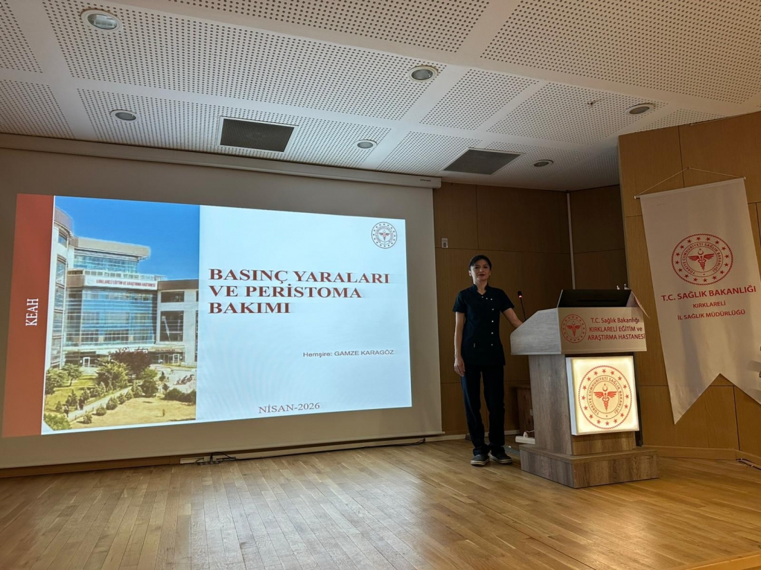 08.04.2026 tarihinde Kırklareli Eğitim ve Araştırma Hastanesi konferans salonunda gerçekleştirilen seminerde, Eğitim ve ARGE Birim sorumlusu Dr. hemşire Ecehan BULUT koordinasyonunda Yüksek Hemşire Gamze KARAGÖZ tarafından öğrencilere eğitim verildi.